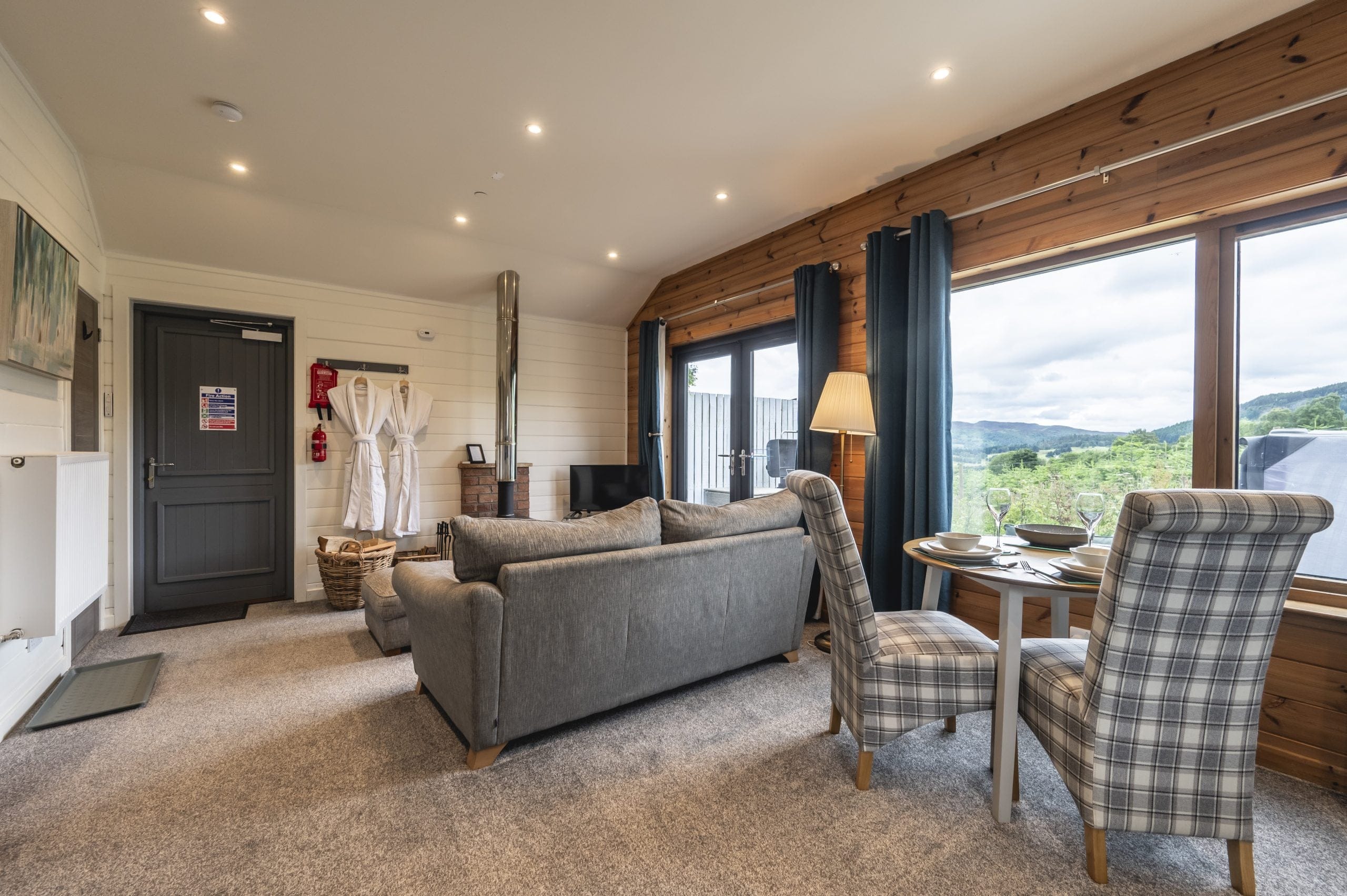 These lodges enjoy a superb view over fields to hills and mountains beyond. The perfect location for a memorable break.